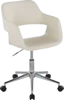 With a beautiful contemporary design, the Whisp III Cream Desk Chair features a low backrest with a slight opening, ergonomically designed to fit your body, armrests for additional comfort, and an adjustable base. Faux leather upholstered in a variety of colors, the Whisp III Cream Desk Chair will look great in any home office. Customer assembly required.