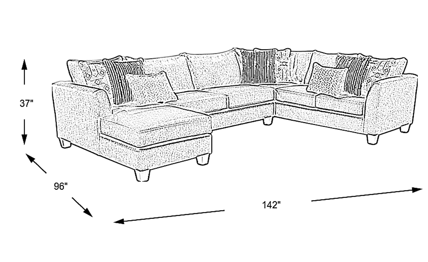 142"w"w x 96"d"d x 37"h"h