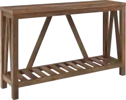 Rustic charm can be yours when you add this 52-inch A-Frame Whittenham console table to your living room, entryway, or hallway. The walnut styled finish bring the perfect touch of aesthetic appeal while the spacious table top and open slatted bottom shelf provide the perfect place to display and store your favorite accessories, photos, and collectibles. Constructed of warp-resistant MDF and durable laminate, this piece will be the simple answer for all of your decorating needs. Customer assembly is required.