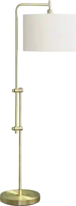 Step into the spotlight with Whizy Gold Floor Lamp. Featuring a white drum shade over an industrial style metal body, this contemporary piece is the perfect way to brighten up a living room, bedroom, or office to create a warm ambiance. Add this classically modern arc lamp to your home and instantly elevate your decor! Partial assembly may be required.