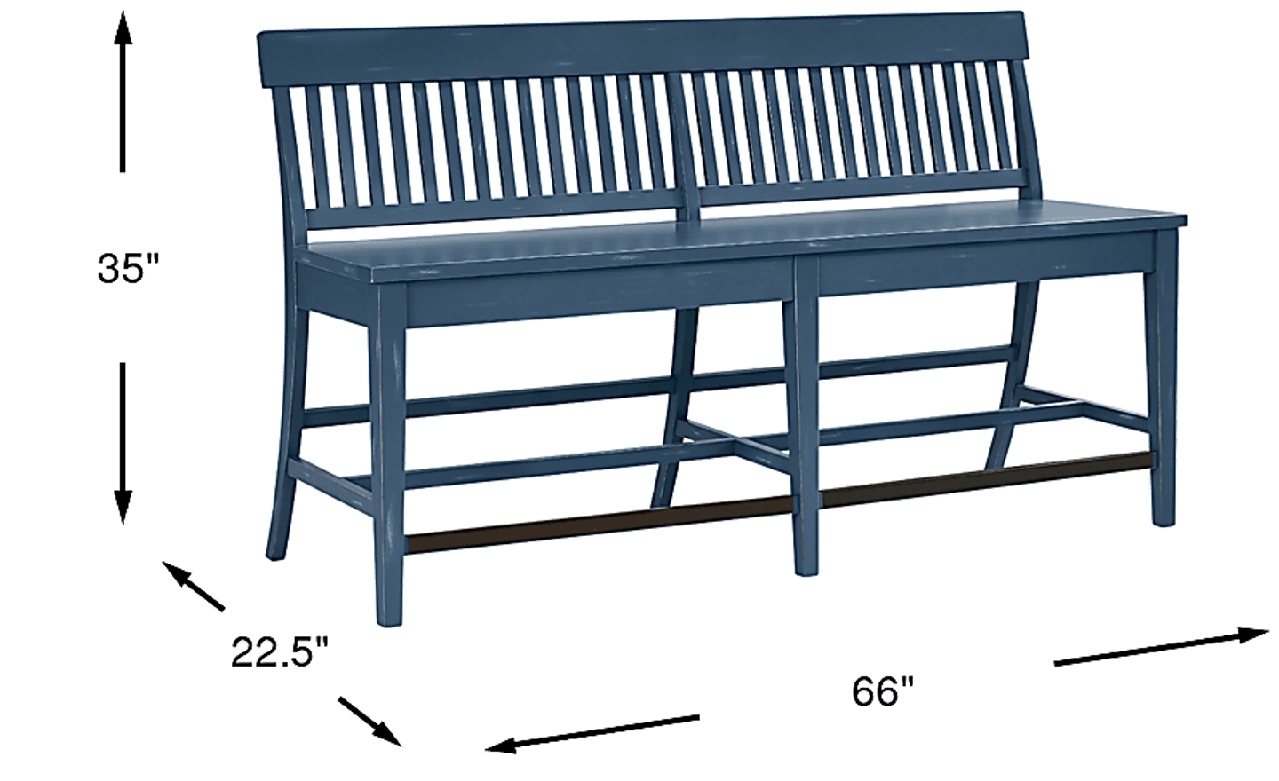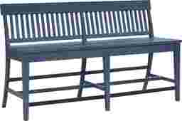 Mixing cottage charm with refined rustic details, the Wicklow Hills counter height dining bench delivers the ultimate farmhouse style for your space. Crafted from pine wood solids and pine veneers, this piece has a slat back design and is finished in blue for a classic look and feel.