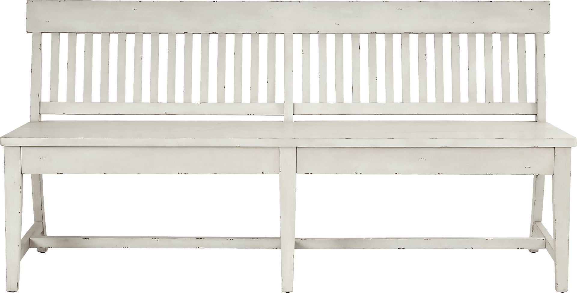 Mixing cottage charm with refined rustic details, the Wicklow Hills dining bench delivers the ultimate farmhouse style for your space. Crafted from pine wood solids and pine veneers, this piece has a slat back design and is finished in an antique white color for a classic look and feel.