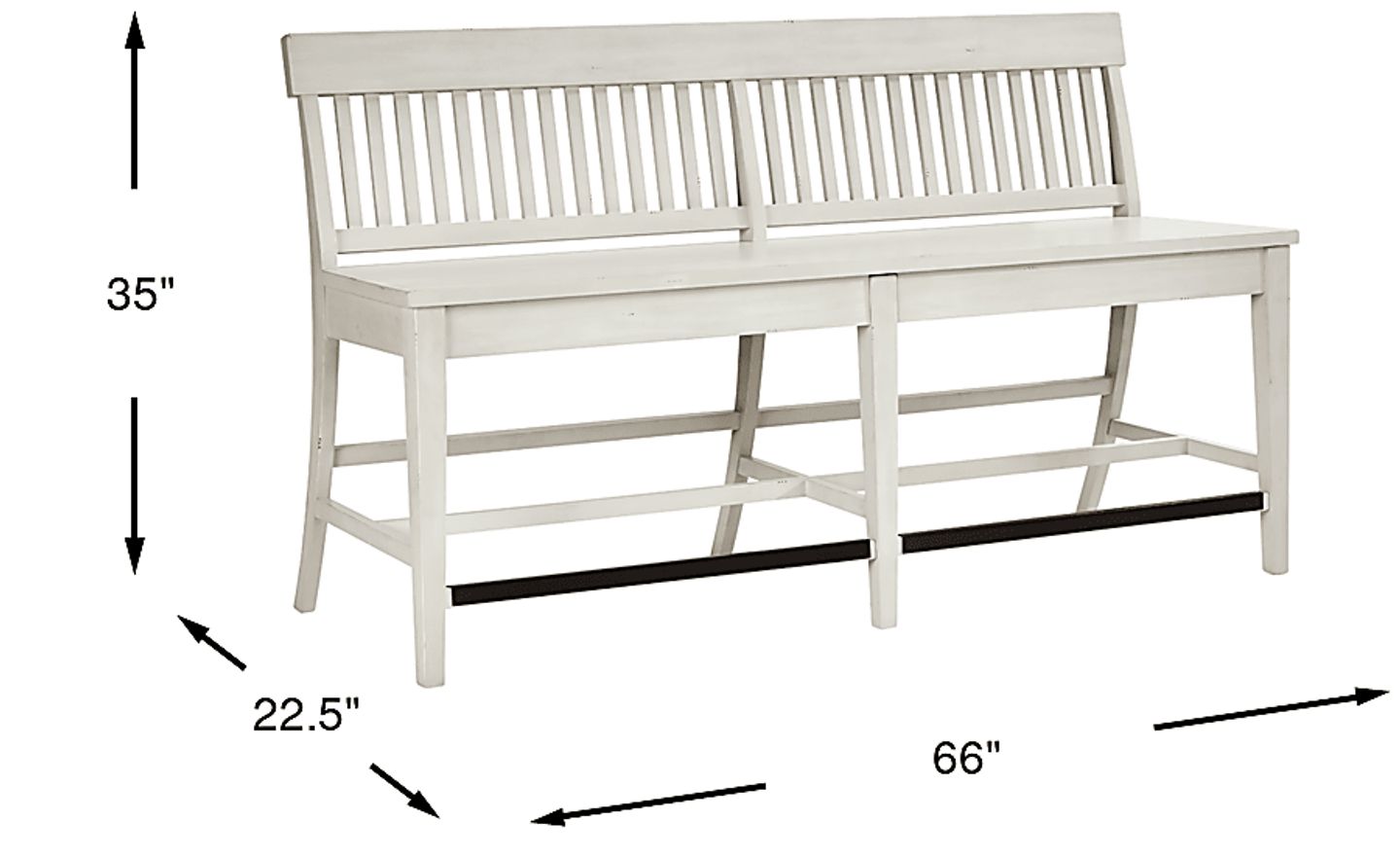 Mixing cottage charm with refined rustic details, the Wicklow Hills counter height dining bench delivers the ultimate farmhouse style for your space. Crafted from pine wood solids and pine veneers, this piece has a slat back design and is finished in an antique white color for a classic look and feel.