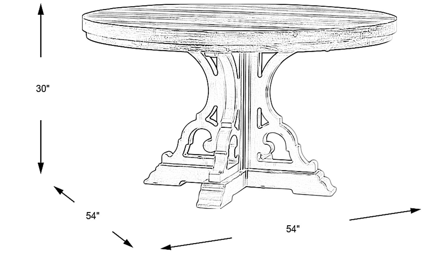 Mixing cottage charm with refined rustic details, the Wicklow Hills dining table delivers the ultimate farmhouse look for your space. Crafted from pine wood solids and pine veneers, this piece features a 54-inch round tabletop finished in a brown color with a classic look and feel. The table's legs are finished in an antique white color and have unique harp-shaped intricacies that strike a perfect balance between modern elegance and understated sophistication.
