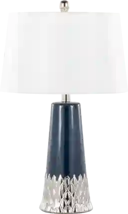 Brighten up a dark corner with the Wicma Sea lamp Featuring a sophisticated navy blue finish on a sleek ceramic base with a silver metal accent, this lamp is the perfect addition to your contemporary styled home. Partial assembly may be required.