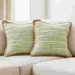 Decorate your space with this beautiful set of 2 Wihara coastal throw pillows. Handmade from a textured cotton blend fabric, it boasts a jute frame for both quality and style. With a classic striped pattern, it blends effortlessly into your existing decor, while adding a fresh look. Perfectly placed on your sofa, chair, or bed, it is sure to add a beautiful pop of color and dimension. Poly inserts included.