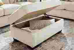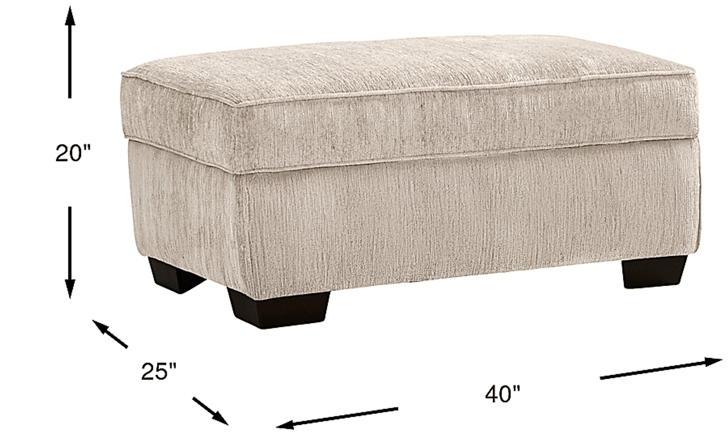 Blurring the line between casual and couture, the Wilcox ottoman strikes an easy balance that's effortlessly chic yet casually relaxed. Soothing chenille in beige hugs every curve of this contemporary piece, accented with stylish welted seams throughout. A storage compartment inside offers space for pillows, blankets and more. Upholstery: 100% Polyester.