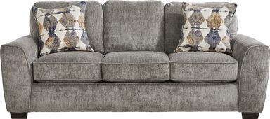 Includes:gray sofa • gray loveseat • Cocktail Table + 2 End Tables • stone table lamp (2)