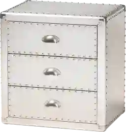 Bring a touch of industrial style into your bedroom or living room with the Wildoryln accent cabinet. Finished in silver metal with rivet detailing along its edges. Featuring three drawers to provide space to keep beside essentials organized. Customer assembly is required.