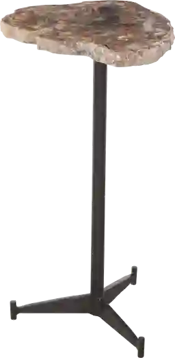 The Wilgus brown accent table features a natural cut petrified wood top with matte black finished iron base. The natural petrified wood top will vary slightly in shape and size, making each piece unique.