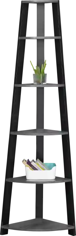 Add the perfect corner piece to any room with this chic gray and black Willomet accent bookcase, complete with five fixed tray style shelves. This transitional designed bookcase blends well with any type of decor, providing additional display space without sacrificing style. Use it in a corner of your living room, family room, guest room, home office, or hallway for a tidy way to store your books and showcase your accent pieces. Tipping hardware is included for further stability. Weight Capacity 31lbs. Customer assembly required.
