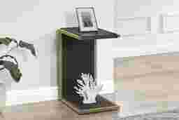 Bold luxury sets the scene when it's time to unwind around the Wilshire table collection. Designed with a carefully considered palette of materials and colors, this black contemporary chairside table features stunning craftsmanship with its c-shaped frame and wood-grain-like details. A light brown finished frame outlines this piece for a stylish contrast.