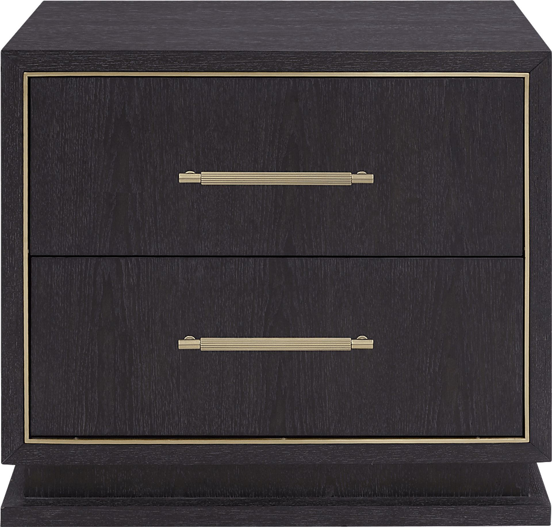 Luxurious style and refined sensibilities shine through every sleek line of the Drew & Jonathan Wilshire nightstand. Throughout this contemporary piece, a carefully considered palette of materials and colors allows each detail to stand out. Hickory veneers finished in a deep, rich merlot are inlaid with gold-colored metal, framing the two drawers of this nightstand. In the top drawer, a hidden USB port allows access to easy charging. Gold-colored bar pull hardware adds a glint of contrast, and a notched plinth base completes the look.