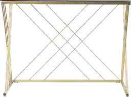 Since this contemporary desk features open storage and no drawers, maintaining organization is the best way to highlight its sleek design. We recommend using decorative trays or small acrylic organizers to keep office essentials like pens and notepads tidy. The gold finish pairs exceptionally well with neutral palettes—such as grays or creams—and can be accented with a vibrant desk chair or nearby wall art to create a professional and inspiring workspace.