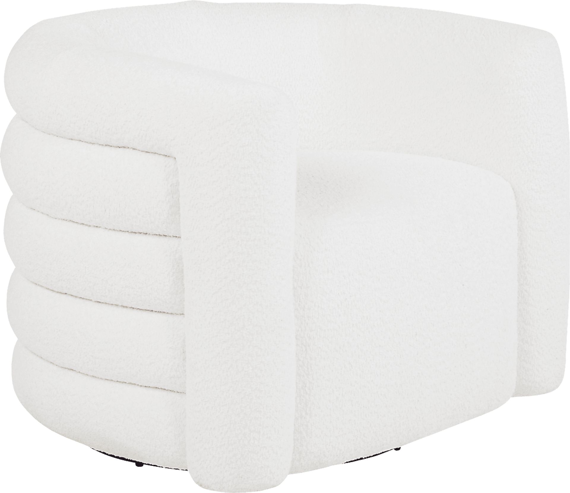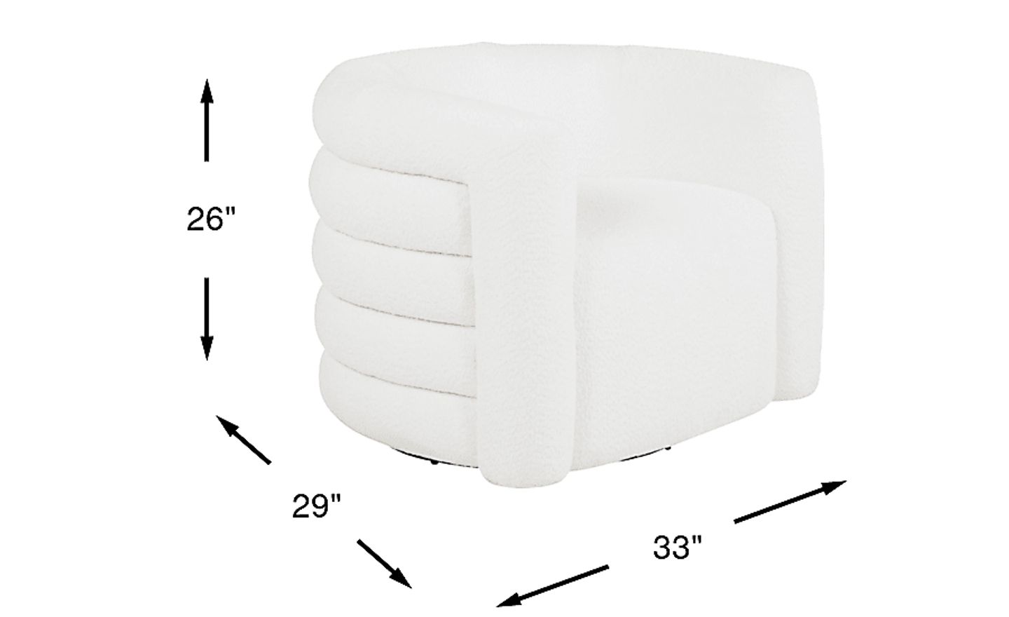 Engage with all your guests in illustrious motion and opulent comfort when the Wimbley accent chair joins your interior design aesthetic. This modern piece features a curved back for lavish relaxation, textured boucle fabric for visual appeal, and a swivel base for easy rotation. Its attached seat cushions and snowy white color will add elegance and sophistication to any room. Upholstery: 100% Polyester.