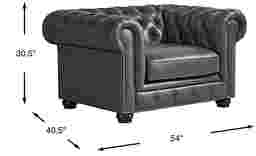 The classic style of the Winchester Way chair commands attention as a true design masterpiece anywhere in your home thanks to its timeless chesterfield silhouette. The luxurious top grain Italian leather where the body touches presents a crackled two-tone look that doesn't miss out on a soft feel. This beautiful gray leather is highly durable while bringing attention to the stunning details of this piece including button tufting, hand-applied nailhead accents and down blend seating. The bun legs are removeable for easy assembly and moving. Upholstery: Top grain leather where the body touches and polyurethane fabric sides and backs.
