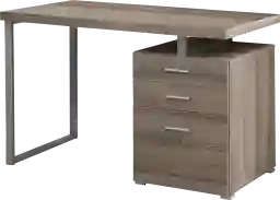 Sleek and contemporary, this Windmier computer desk in a chic dark taupe wood-look finish is the perfect combination of function, durability and design in a modern form. With clean lines, a floating top and silver track metal legs, this desk will add pizzazz to any home office. Featuring two storage drawers and a file drawer for standard and legal sized documents, can conveniently be assembled on the left or right side making this unit uniquely yours to design. The large thick paneled surface provides plenty of room to meet your working needs without compromising style. Customer assembly required.