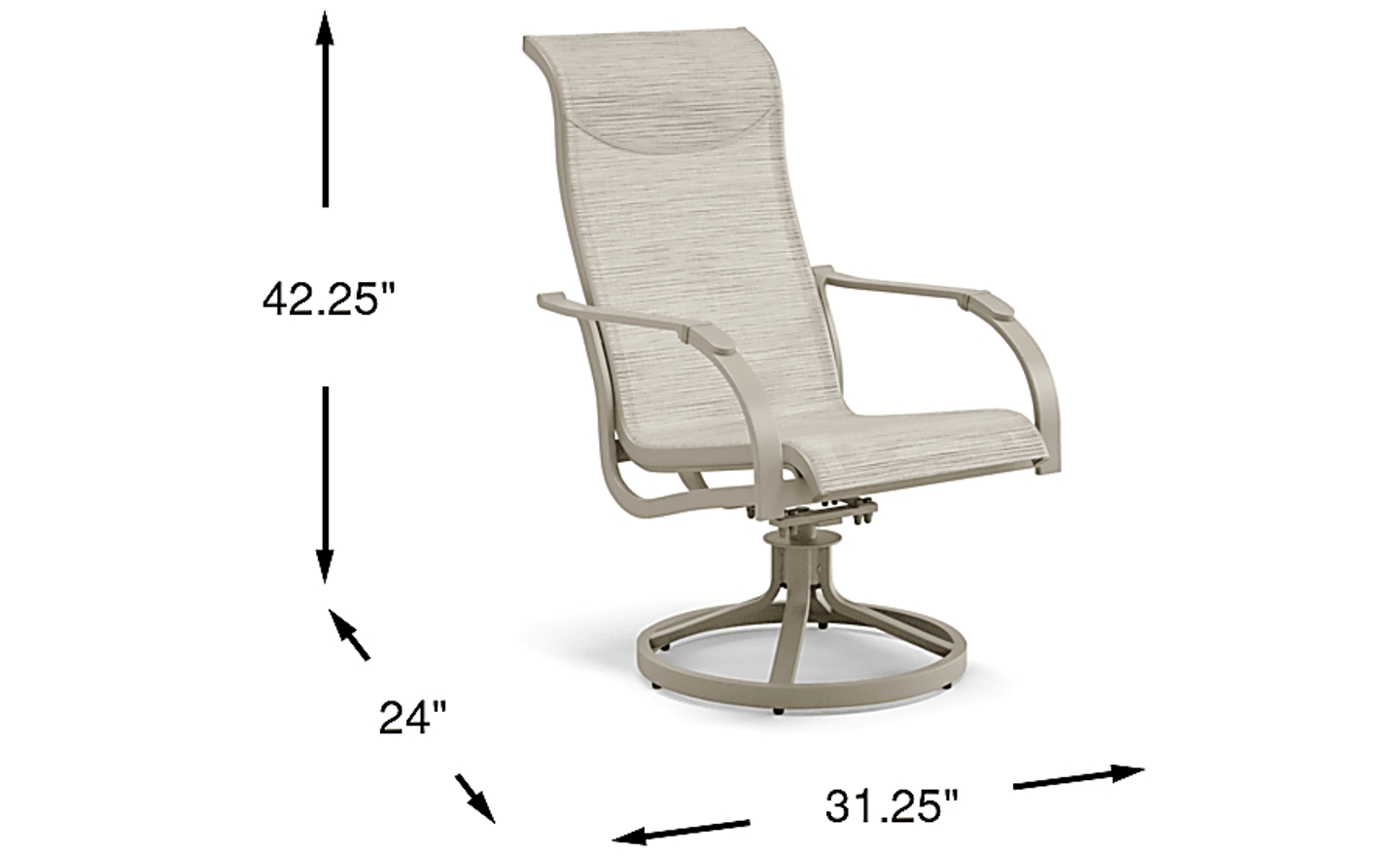 With its smooth swivel and rocking motion, the Windy Isle chair is made for enjoying relaxing outdoor meals, refreshments and conversation. The chair is crafted with a sand finished rust resistant aluminum frame and durable sling style seating.