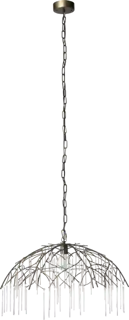An elegant, ethereal twist on a classic dome pendant, the Winey Circle pendant's deceptively fragile structure has been artisan crafted of iron with a antique brass finish. Sheets of sparkling glass beads drip off the frame, evoking beads of dew on tropical vines in the morning sun. As the bulb inside is visible, these are ideal for use with decorative Edison style bulbs. Professional installation by an electrician is recommended.