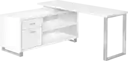 This stunning executive Winfair L-shaped desk will add style to any office space. Finished in white it boasts two storage drawers and two open shelves to accentuate its modern and minimalist design. The two-tiered work top provides a large work area and ample space to store your office essentials, and a solid silver metal leg provides a stable base. The perfect computer desk for your home office, this spacious multi-storage workstation will be admired by your friends and colleagues. Staying organized at home has never been so easy and fashionable Customer assembly is required.