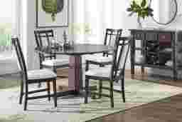 Winslow Brown Cherry Finish 5 Pc Round Dining Room With Upholstered Chairs