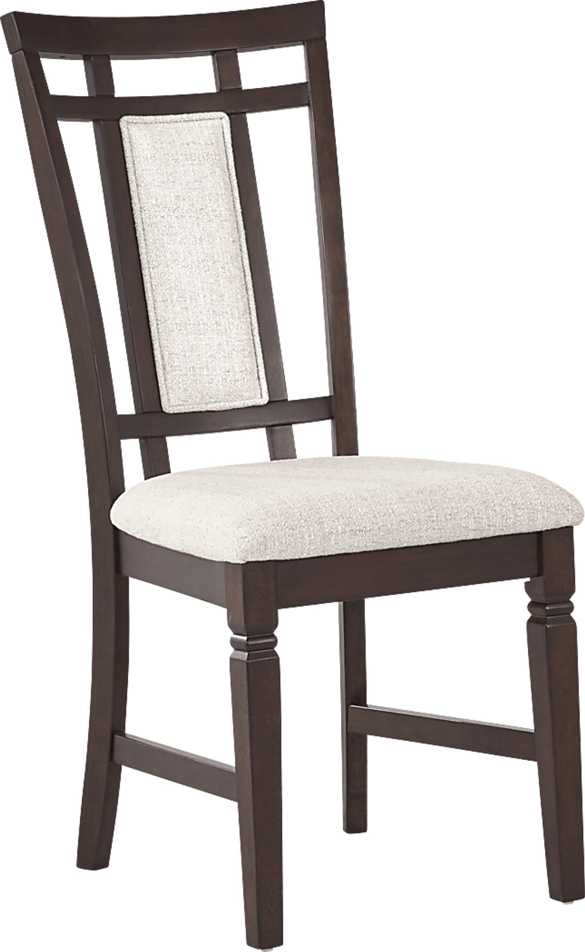 The clean lines and geometric grid pattern of this chair make it a versatile anchor for contemporary and transitional dining rooms. Its dark brown cherry finish offers a sophisticated contrast that pairs beautifully with neutral palettes, while its armless, straight-leg silhouette allows it to complement both rectangular and round dining tables without overwhelming the room’s decor.