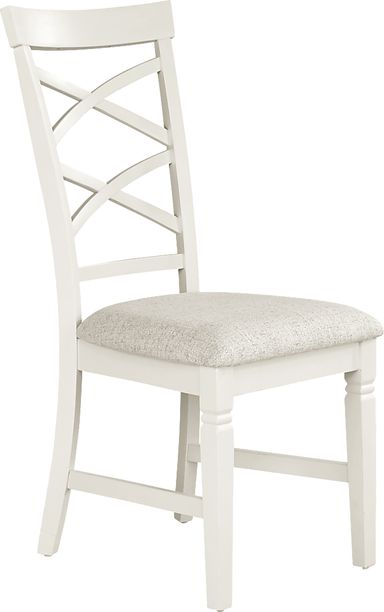 Share more meals together with the chic and contemporary Winslow chair at your dining table. Crafted with cherry veneers in a white finish, this piece has a seat upholstered with beige fabric and a back that boasts an intriguing grid pattern.