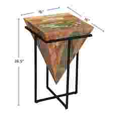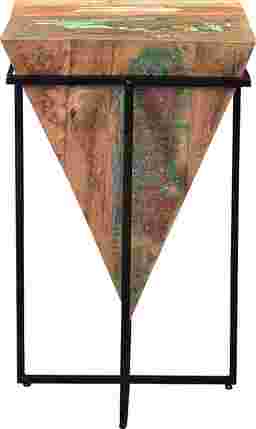 This modish Winsons accent table is a piece that will elevate any room in your household with its modern geometric design. Functional and eye-catching, sheesham wood is distressed with chic multicolor discoloration, complemented by a contrasting iron frame. Standing at the perfect height for use as a bedside table or living room accent piece, this is a perfect solution to keep your things within an arm's reach without disrupting the aesthetic flow of your space. Customer assembly is required.