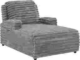 Exuding a "treat yourself" energy from every angle, the Wintercrest power chaise is the perfect spot for everything from settling in with your latest read to catching up on your favorite shows. Upholstered in soft, textured fabric, this gray chaise offers a plush, inviting feel with a tiered channel-tufted backrest for supportive cushioning. Matching quilted seat and side panels create a cohesive, cloud-soft aesthetic from top to bottom. A built-in power reclining mechanism lets you ease back at the touch of a button, providing customizable comfort whether you're fully stretching out or simply taking a moment to rest. Convenient built-in cupholders keep beverages and small essentials within reach, while integrated USB charging ports ensure your devices stay powered as you unwind. Upholstery: 100% Polyester