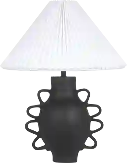 Introduce some whimsy to your space with the Wintersun Edge lamp, featured in a striking black. Crafted with a biomorphic surface texture from hand-formed fiberglass and a pleated lampshade, this lamp is a unique fusion of artistry and functionality. Whether you're completing a maximalist setting or seeking a statement piece for a wabi-sabi neutral space, this lamp effortlessly adds personality and charm to any room. Partial assembly may be required.