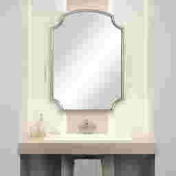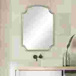 This item is noted for "customer assembly," which typically involves attaching the specific mounting hardware provided to the back of the frame. Because the mirror features unique concave corners and an arched top, it is important to ensure it is hung level. For safety, we recommend using high-quality wall anchors if a wall stud is not available, especially in high-traffic areas where vibrations from closing doors could occur.