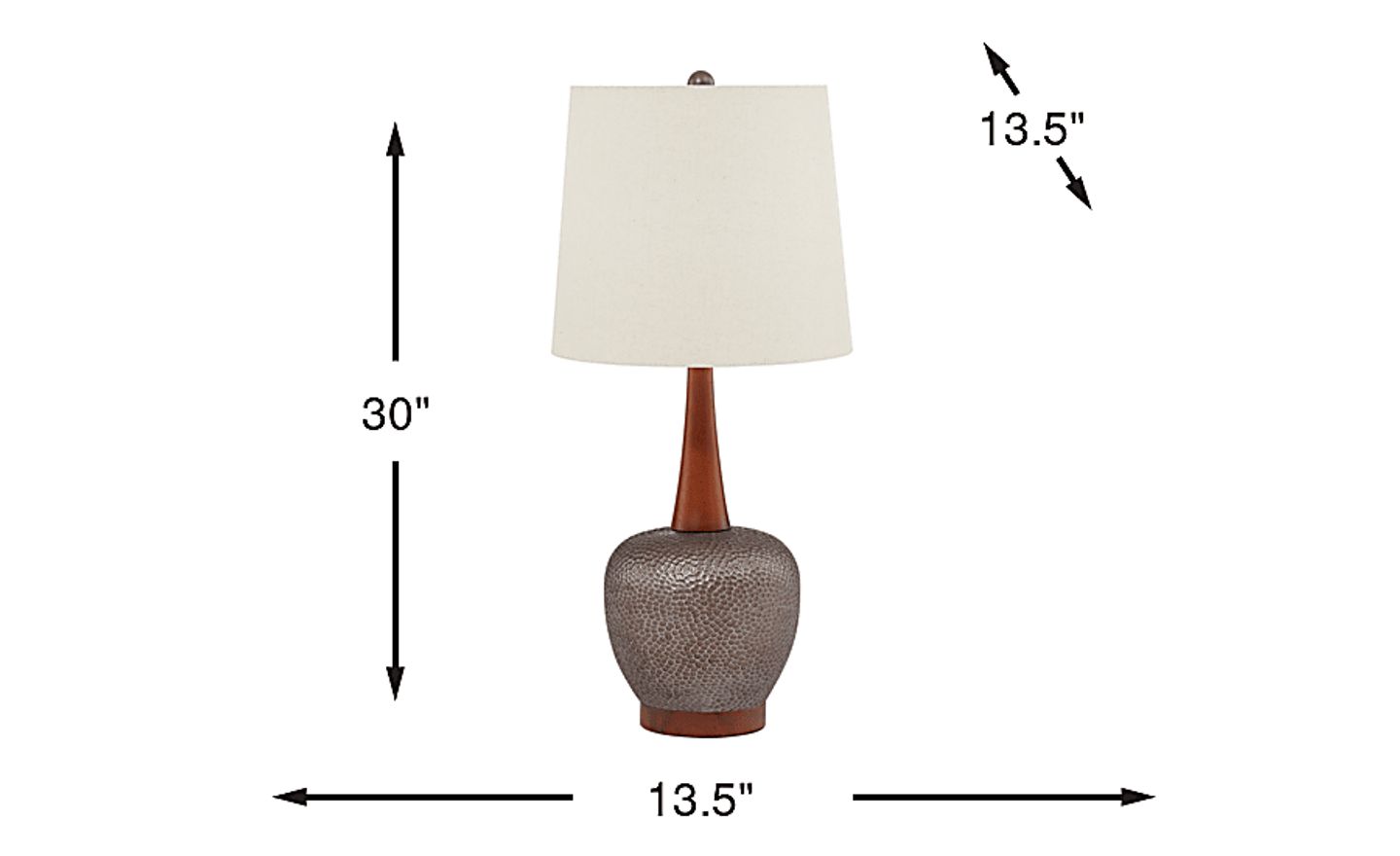 Gracefully understated, the Wilkson Way table lamp set casts an aura of irresistible charm. Crafted of molded resin, each lamp's charcoal colored base features meticulous hammered effects while a neutral-tone shade enhances the overall silhouette with effervescent simplicity. Bulbs with a maximum capacity of 100 watts are required for these units.