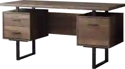 Trendy and modern, this smooth Wisterwood brown computer desk in a laminated wood grain finish is the perfect combination of function, durability, and design in a stylish form. With clean lines, a floating top work station that contrasts with the sturdy black metal legs, this desk will add a warm rustic industrial touch to any office. Featuring two storage drawers and a file drawer to help keep you organized, with a large desktop surface to provide plenty of room for all your hardware and working needs. Customer assembly is required.