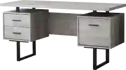 Trendy and modern, this smooth Wisterwood gray computer desk in a laminated wood grain finish is the perfect combination of function, durability, and design in a stylish form. With clean lines, a floating top work station that contrasts with the sturdy black metal legs, this desk will add a warm rustic industrial touch to any office. Featuring two storage drawers and a file drawer to help keep you organized, with a large desktop surface to provide plenty of room for all your hardware and working needs. Customer assembly is required.
