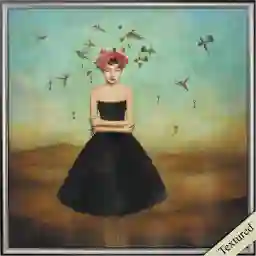 This non-glass item is a beauty! An acrylic overlay is hand applied directly unto the print, that dries with a textured look and feel. It is framed to size with a modern silver frame that has a black trim. Very edgy and fun!