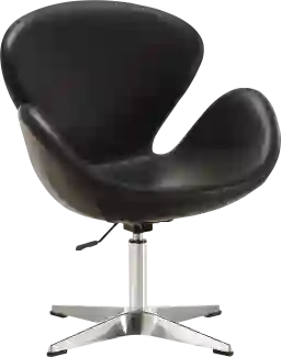 A black accent chair serves as a sophisticated anchor that complements a wide range of palettes. For a contemporary look, we recommend pairing the silver pedestal base with other metallic accents in your room. To create a professional-grade design balance, try mixing this sleek faux leather piece with a soft fabric sofa; the contrast in textures adds depth and visual interest. Our designers suggest placing it against a neutral-toned rug to let the sculptural, retro silhouette truly stand out.