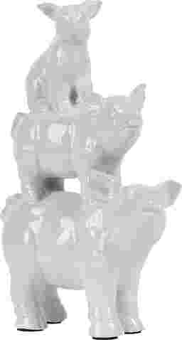 With their comical expressions and glossy finish, this trio of precariously perched pigs make a playful yet stylish addition to any home or office. Feature these charming pigs atop a chic office desk, on the counter in a farmhouse kitchen, or sitting area.
