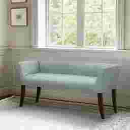 Elevate your space with the Wolfdew blue accent bench. Compact yet elegant, this versatile bench features a low back and flared arms, highlighted with sleek nail head trim for a touch of sophistication. Designed for both style and comfort, this bench offers supportive seating, making it perfect for end-of-bed placement or a welcoming addition to entryways, hallways, living room, bedroom and more. Bring home this timeless piece and transform any room with ease. Customer assembly is required.