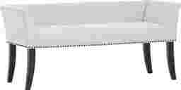 Elevate your space with the Wolfdew white accent bench. Compact yet elegant, this versatile bench features a low back and flared arms, highlighted with sleek nail head trim for a touch of sophistication. Designed for both style and comfort, this bench offers supportive seating, making it perfect for end-of-bed placement or a welcoming addition to entryways, hallways, living room, bedroom and more. Bring home this timeless piece and transform any room with ease. Customer assembly is required.
