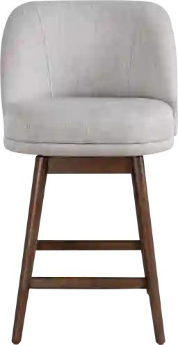 The Wolfphone II dark brown and taupe counter height stool brings a refined blend of style and comfort to your kitchen island, counter, or home bar. Featuring a low-back design with a rectangular upholstered seat and sleek curves, this modern transitional stool offers an elegant seating solution. Upholstered in durable polyester fabric, the soft fiber-wrapped foam cushioning ensures superior comfort for everyday use or entertaining guests. Its 360-degree swivel feature allows for smooth movement. The sturdy rubberwood frame, enhanced with a brushed finish, provides lasting durability while adding a sophisticated touch to the overall design. The Wolfphone also features plastic glides to protect your floors, combining practicality with style. Assembly is quick and simple, requiring only a screwdriver. Customer assembly is required.