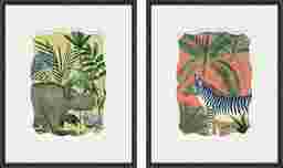 Wonderland Wild II are jungle animal prints that feature white matting with specialty mat cuts. Framed in a rubbed matte espresso wood with honeycomb embossing. Customer assembly is required.