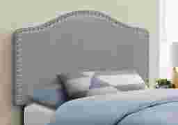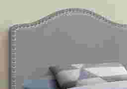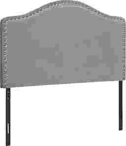 Combining modern materials and a classic silhouette,the Woodbee is an upholstered headboard panel in a gray leather-look fabric brings timeless style to any bedroom. Silver-finish nailheads create an eye-catching frame around the gently arched top and straight sides. Upholstered with extra padding and smooth-to-the-touch fabric, this headboard panel provides an ultra-soft feel for a comfortable night's sleep. Streamlined and compact, this headboard adjusts easily to your desired height with any new or existing bed frame and is ideal for any size bedroom. Customer assembly is required.