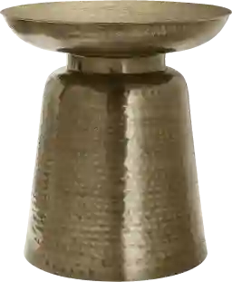 Introduce a bold and beautiful way to bring fashion and function to any room in your home with this hand-crafted, Woodbrier side accent table in a luxurious gold metal finish. This space saving accent table stands 22 inch high, with a sleek bell shaped base and an all over hammered texture for a subtle glamorous touch. This practical furniture piece serves many purposes, whether it's used as a side table next to a chair in your living room, near a sofa as an end table with a small lamp on top, or bring it into the bedroom as a sophisticated nightstand. The best part is this drum table requires no assembly, just take it out of the box and bring that instant glam factor to a room This sculptural shaped table works well in all decor styles including contemporary and modern spaces. For indoor use only.