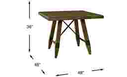 The Woodcote dining table has a transitional style that combines contemporary and rustic looks to create an inviting place for mealtimes. Supported by a trestle base with tapered legs, the 48 x 48 inch top features paneled lines for wonderful eye appeal. Crafted with wood solids and oak veneers in a brown finish, burnished accents add a decorative element while reinforcing the rustic look.