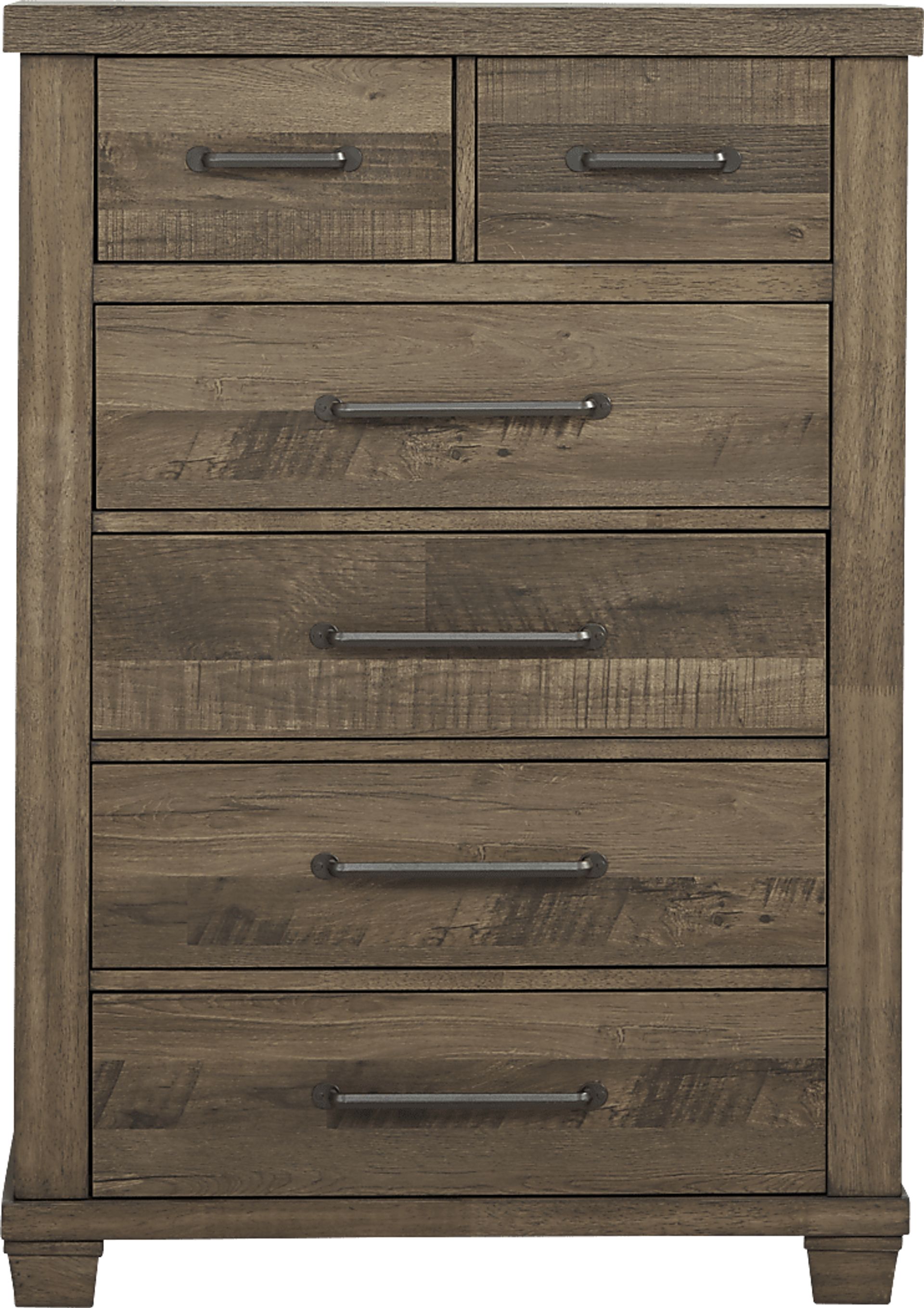 Store your clothing in style with the Woodcreek chest. This charming rustic piece provides six spacious drawers with bar shaped metal hardware. Each drawer is made using English dovetail joints for strength and stability. The chest's rich brown finish adds a warm touch.
