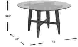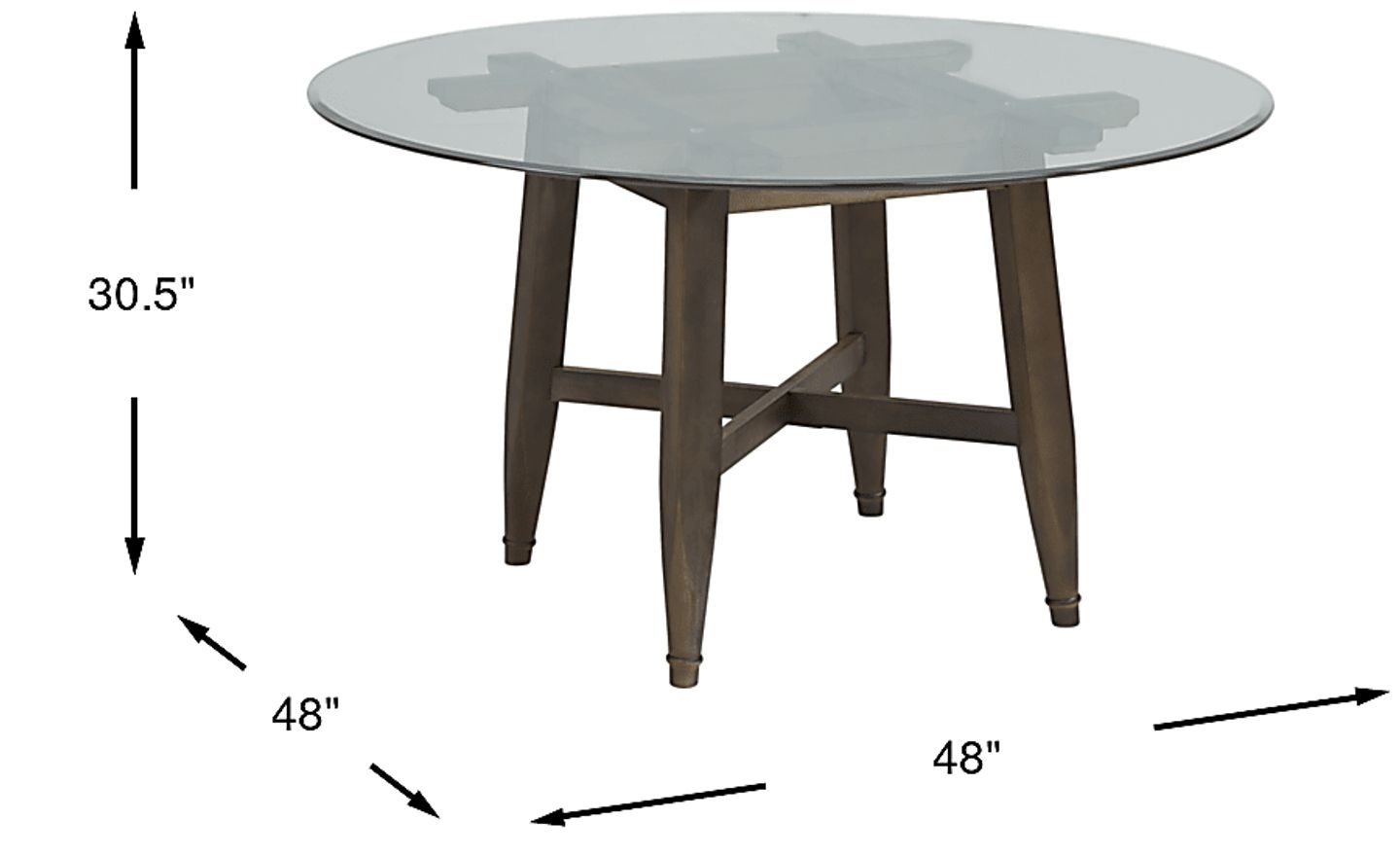 Beautifully designed, the Woodland Avenue dining table makes an elegant centerpiece for your dining area. Its 48-inch round glass top with a beveled edge creates an elevated sense of style and class. Finished in a rich brown, the pedestal base is crafted of spruce and wood solids. Tapered legs with carved rings add the finishing touch to this table.