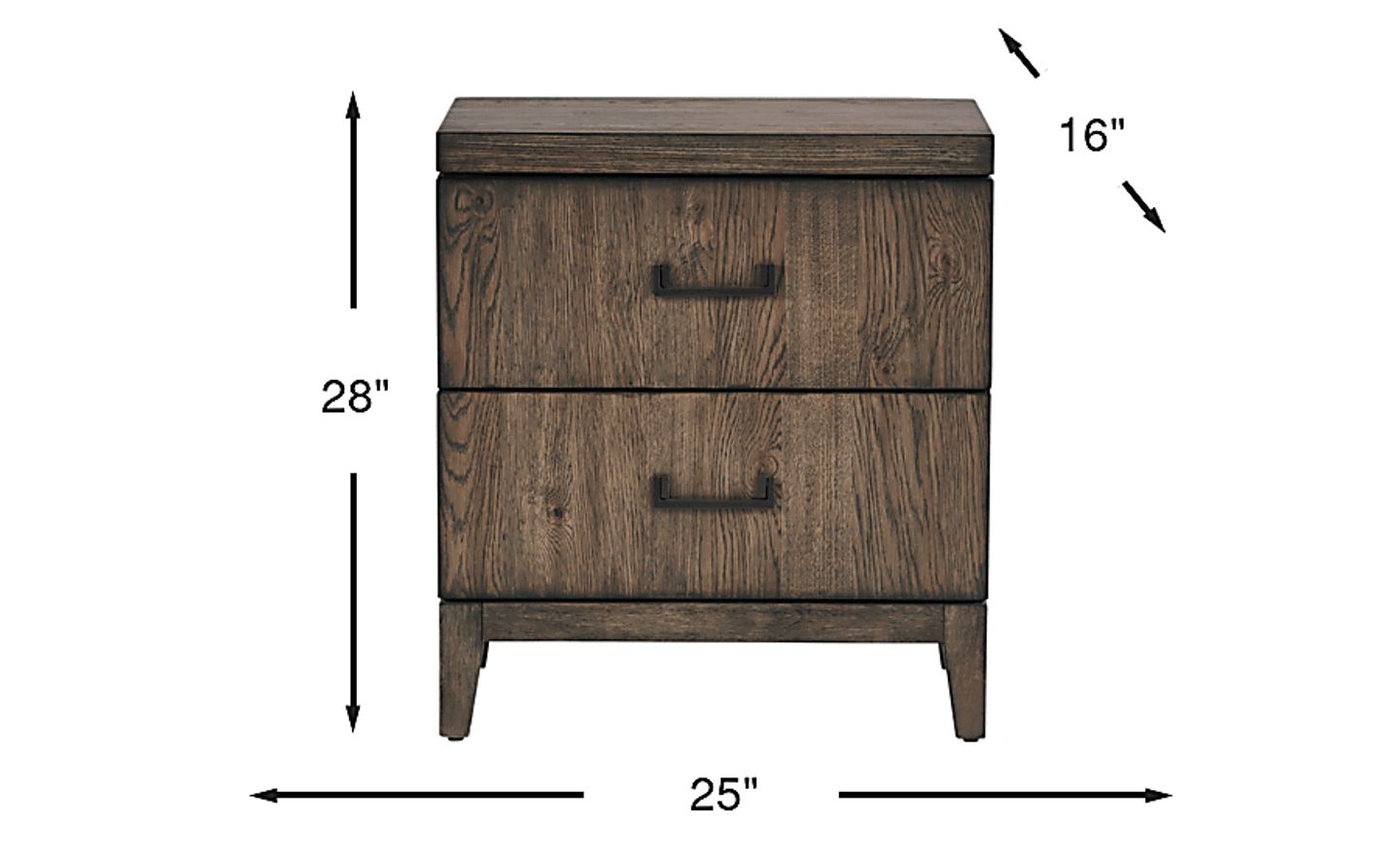 Mixing sleek flair with everyday elegance, the Woodland Park nightstand delivers a stylishly simple piece for your bedroom. Crafted of knotty oak veneers in a brown finish, this nightstand features two drawers constructed with English dovetail joints and ball bearing glides for enhanced durability. Dark cast metal pull hardware on the drawers offers a contemporary touch. The dual USB ports make charging your favorite electronic a breeze.