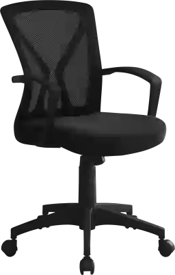 This mid-back Woodwardia office chair with fixed armrests in black has your back if you need a supportive, comfortable, and stylish desk chair. The backrest has a curved, ergonomic shape that promotes good posture. The seat is deep and extra wide with generous padding to offer a roomy feel. Black mesh fabric that allows air to circulate covers the swivel seat and backrest. The backrest exterior features supports that are both decorative and functional. These supports add visual interest and can be used as handles when you move this adjustable-height chair that has a black 5-star base with casters for mobility. Ideal for smaller spaces, this chair will bring streamlined style to your office. Customer assembly is required.