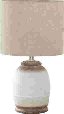 Add a touch of contemporary flair to your living space with the Woodwell Cream Lamp. The two-toned light brown and cream resin base adds depth and character to this lighting piece. This fashionable lamp with the textured finish base is complimented by the beige shade to softly diffuse the light and create a warm ambiance in any room. With its versatile design, this would even be useful as a chic desk lamp or on a console helping to illuminate a surface. Partial assembly may be required.