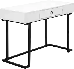 Searching for a writing desk to get excited about. Straight lines and modern black metal legs give this Worthem desk a stylish design perfect for any fashionista. This white computer desk also provides ample storage with a single large, centered drawer adorned with a chic black ring pull. Sized perfectly for any home office space, this desk would also work as an accent piece or console table, adding glamour to any room in your home. Customer assembly is required.